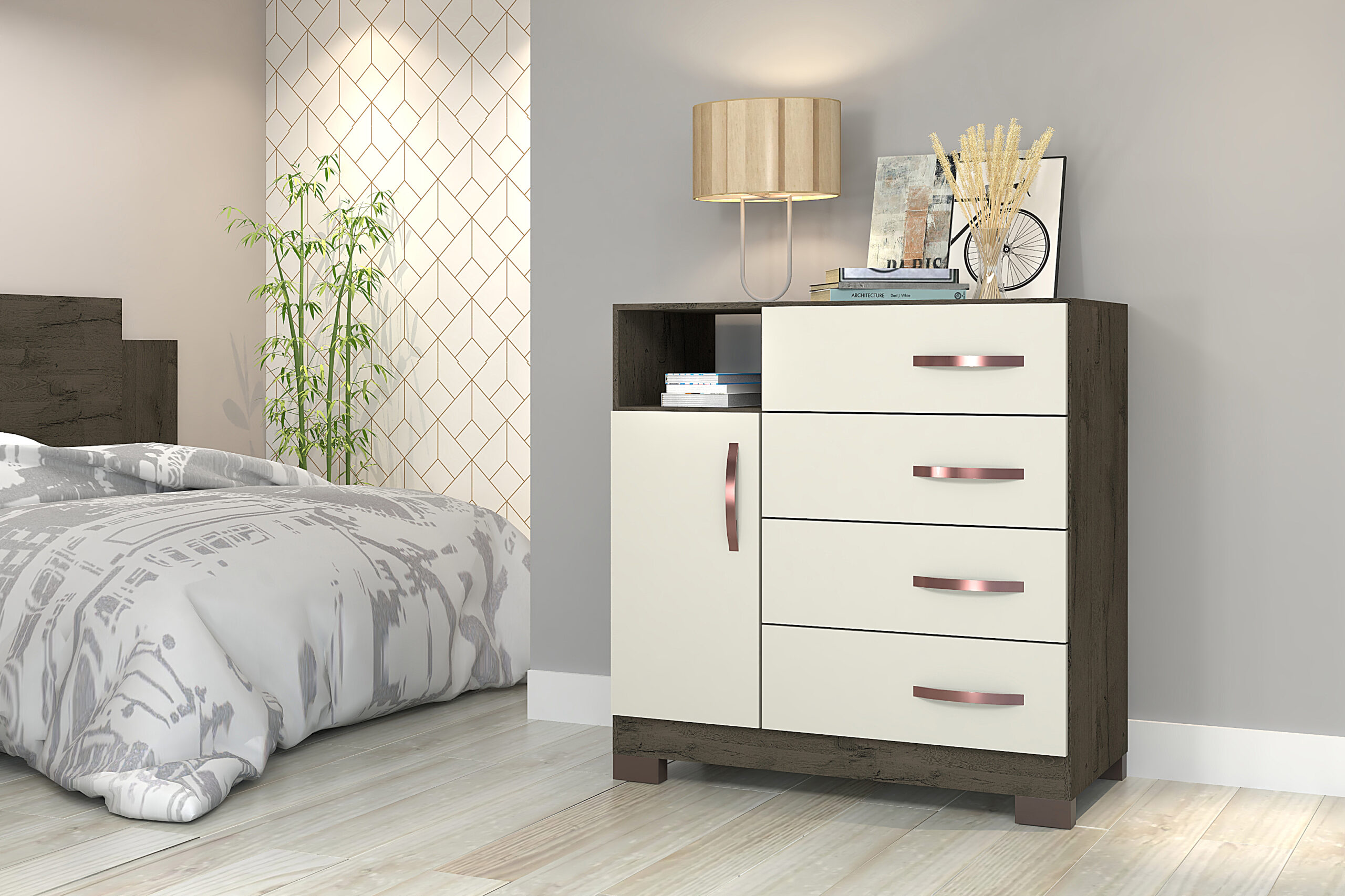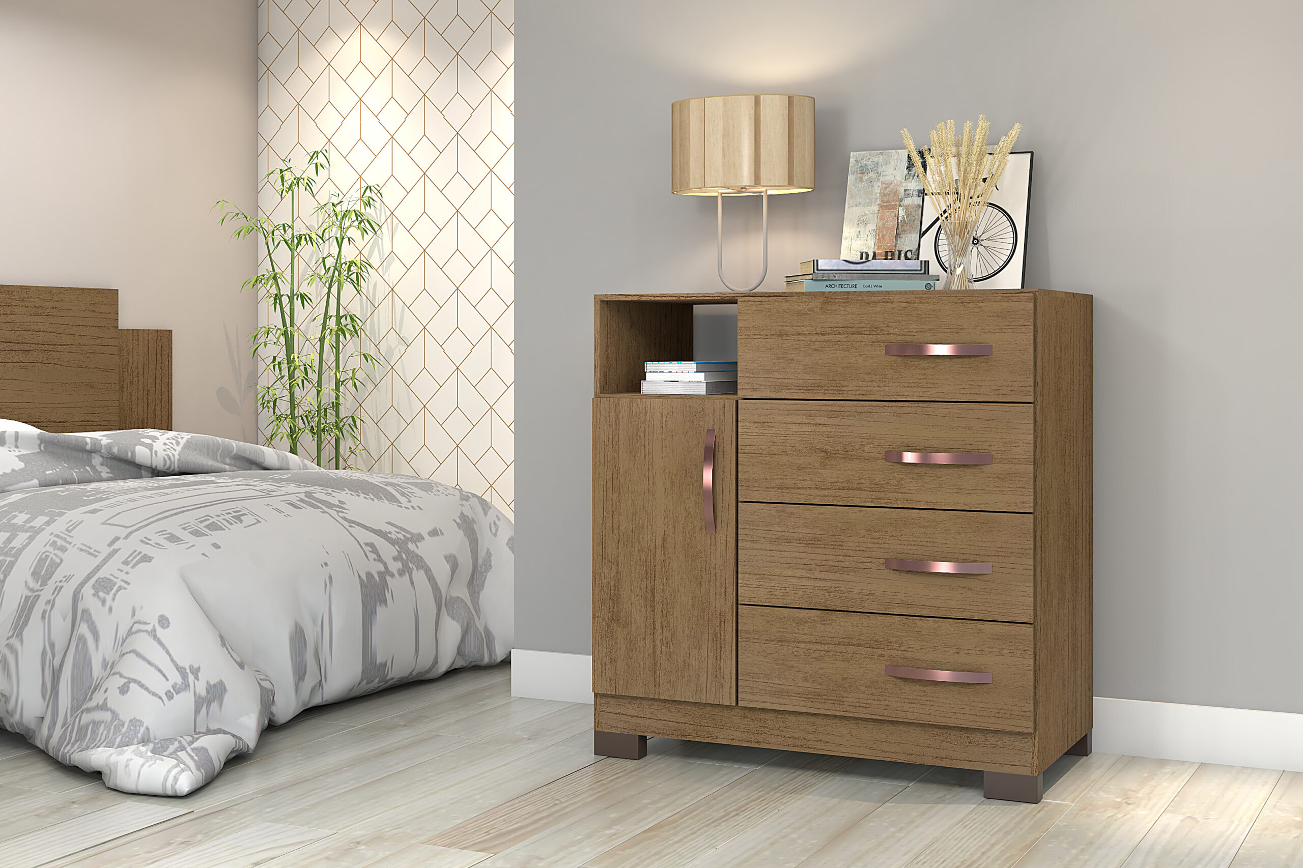 | Cômoda | Com Quatro Gavetas e Uma Porta |