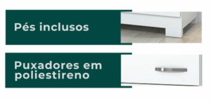 | Puxadores | Em Poliestireno na Cor Cromados ou Bronze |
