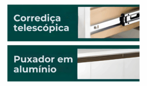 | Puxadores | Perfil em alumínio anodizado |